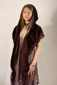 A multifunktional shawl with my trademark jellybag-hoodie. You can wear it open, just like a stola, you can tie it in front of you, so that it wont slip down your shoulders, but the best thing is, cause the shawl is so very long, you can cross it in front of you, and than tie it in your back, underneath the hoodie and keep warm and snuggly, even if an evening might get cold... the perfect spring-summer-autumn accessorie you will never want to miss again!