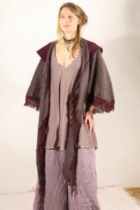 A multifunktional shawl with my trademark jellybag-hoodie. You can wear it open, just like a stola, you can tie it in front of you, so that it wont slip down your shoulders, but the best thing is, cause the shawl is so very long, you can cross it in front of you, and than tie it in your back, underneath the hoodie and keep warm and snuggly, even if an evening might get cold... the perfect spring-summer-autumn accessorie you will never want to miss again!
