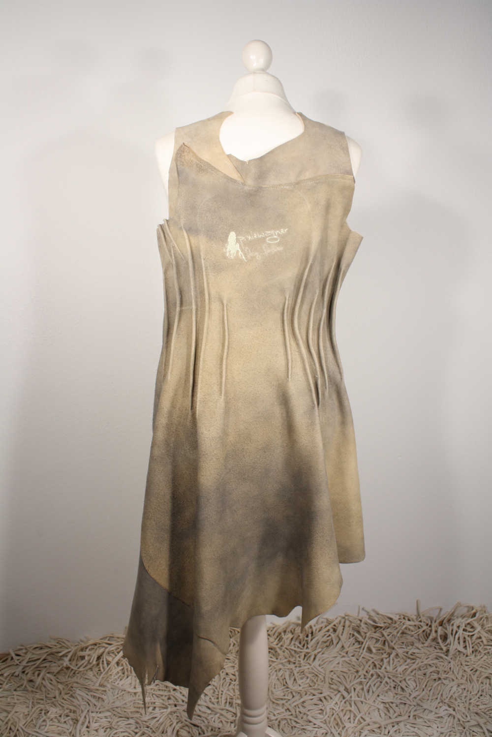 Long Waistcoat made from a strong suede in shades of a brownish grey. Embroiderd with art nouveau inspired ornaments picturing lent lilies. Artfully waisted by quilting seams in the back!